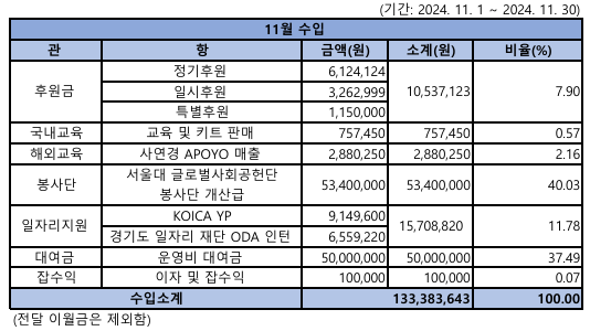 2024년 11월 사단법인 호이 재정보고